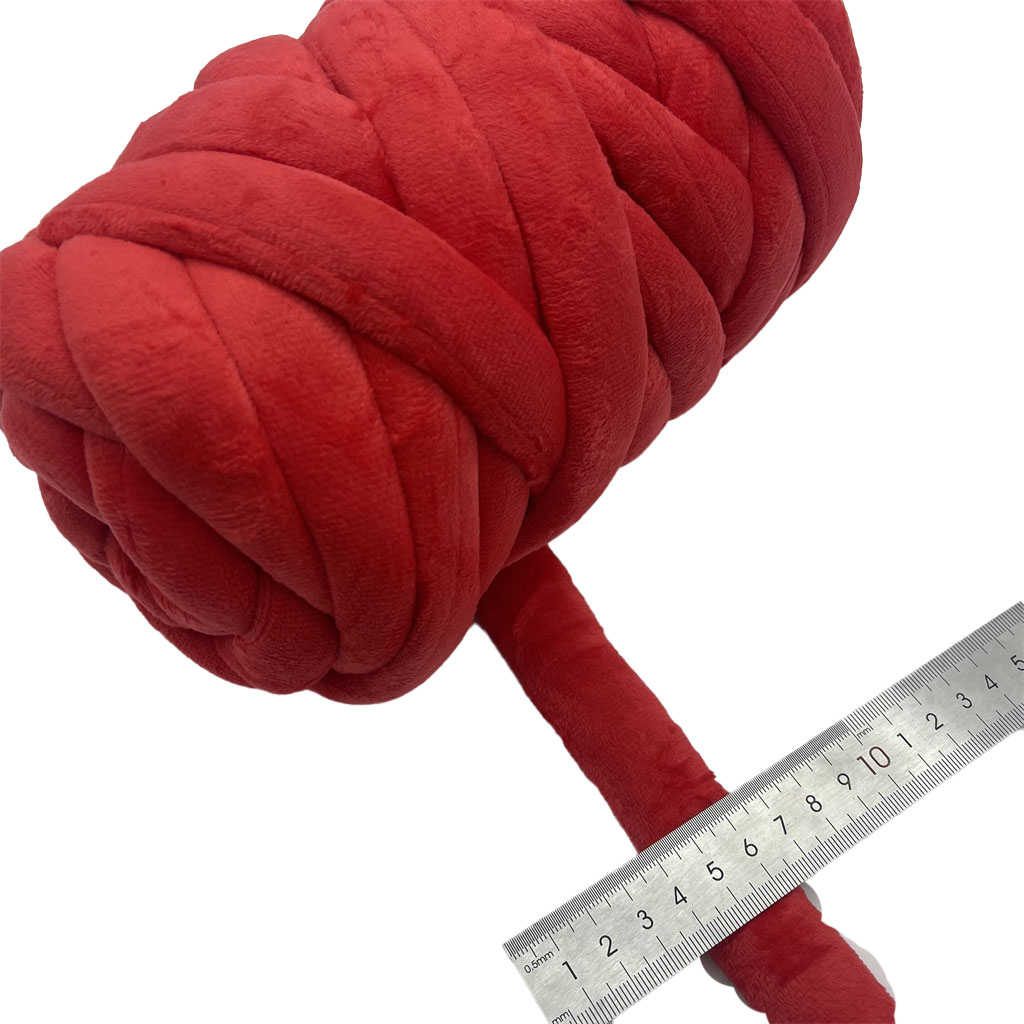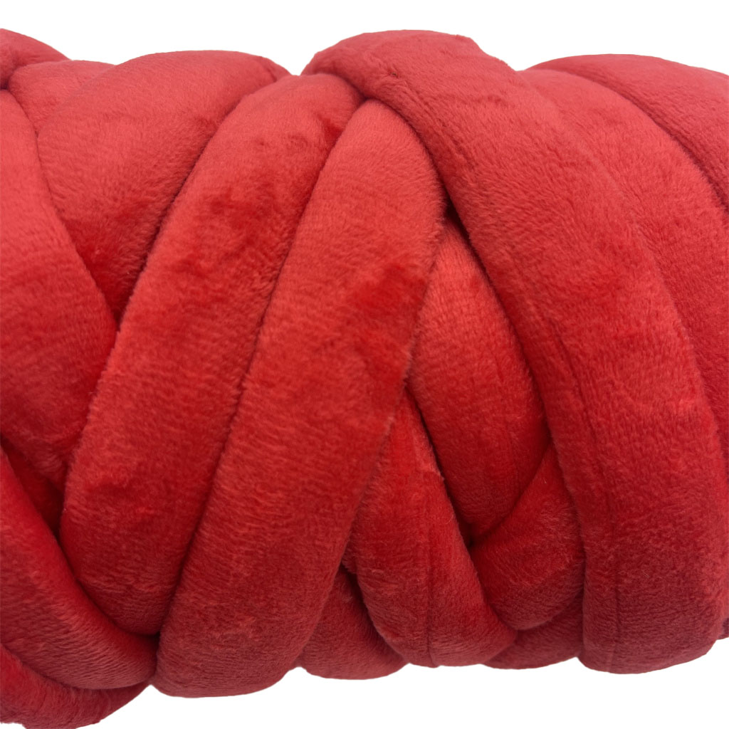 Bei diesem Produkt handelt es sich um ein im Großhandel im Werk hergestelltes Polyester-Effektgarn, das speziell für Fingerstrickanwendungen entwickelt wurde. Das Garn besteht aus einem Samtschlauch mit einem einheitlichen Durchmesser von 2 cm, was ihm eine substanzielle, dreidimensionale Form verleiht. Seine Zusammensetzung ist eine Mischung aus Polyester und Baumwolle und kombiniert die strukturelle Stabilität und Widerstandsfähigkeit von Polyester mit dem natürlichen Griff von Baumwolle. Diese Materialkombination trägt zur definierten Form und den haptischen Eigenschaften des Garns bei. Die vorgeformte röhrenförmige Struktur erleichtert den Fingerstrickprozess und ermöglicht die effiziente Herstellung strukturierter Stoffe und Accessoires, ohne dass herkömmliche Werkzeuge erforderlich sind. Aufgrund seiner Abmessungen und Konstruktion eignet es sich für die Herstellung von Artikeln mit voluminöser und weicher Textur.