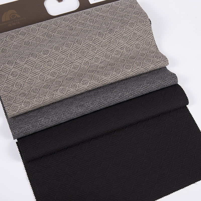 OEM/ODM Geprägte Diamond Twill gestrickte Jacquard-Polyester-Viskose-Spandex-Sportbekleidungsstoffe für Kleidung AW23019. Wir haben mehr als 20 Jahre Branchenerfahrung und sind bekannt für hochwertige Stoffe und Garne.