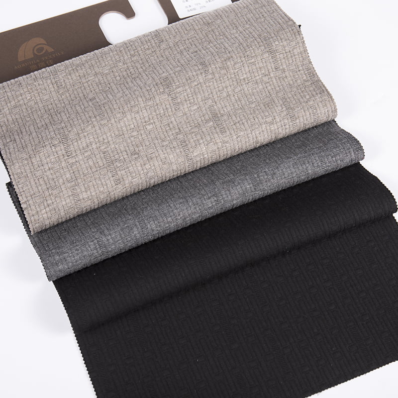 Großhandel Geprägte Rahmen gestrickte Jacquard-Polyester-Viskose-Spandex-Sportbekleidungsstoffe für Kleidung AW23025 Fabrik, wir bieten