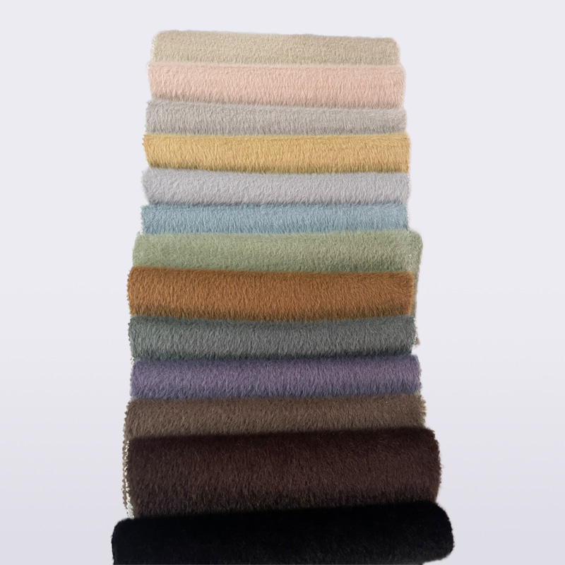 H1816 Winterstoffe aus Polyester-Nylon-Strickimitat aus gebürstetem Nerzfell für Bekleidung zeichnen sich durch ein ausgeklügeltes Verhältnis von hochwertigem Polyester und Nylon aus, wodurch sichergestellt wird, dass der Stoff nicht nur eine hervorragende Abriebfestigkeit und Knitterfestigkeit aufweist, sondern ihm auch eine hervorragende Elastizität und Erholung verleiht, sodass er gleichmäßig bleibt Im kalten Winter bleibt die Kleidung frisch und stilvoll und verformt sich nicht so leicht. Das speziell hinzugefügte Imitationsbürstenverfahren simuliert die zarte Haptik und warme Textur von natürlichem Nerz, sodass jeder Zentimeter der Haut die sanfte Umhüllung wie in einer warmen Umarmung spüren kann. Das modische Design des Stoffes H1816 macht ihn zu einem vielseitigen Artikel in der Wintergarderobe. Ob klassisches Schwarz, Weiß oder modisches Grau und Beige, es lässt sich problemlos mit verschiedenen Kleidungsstilen kombinieren, von schlichter Freizeitkleidung bis hin zu eleganter Abendgarderobe lässt es sich perfekt integrieren. Angesichts des schnellen Tempos des modernen Lebens legt H1816-Stoff auch besonderen Wert auf einfache Pflege. Aufgrund seiner knitter- und abriebfesten Eigenschaften ist es weniger wahrscheinlich, dass die Kleidung beim täglichen Tragen knittert und kaputt geht, was den Aufwand beim Bügeln und Reparieren erheblich reduziert. Gleichzeitig weist der Stoff eine hohe Farbechtheit auf und verblasst beim Waschen nicht so leicht. Selbst nach mehrmaligem Waschen behält es seine ursprüngliche helle Farbe und seinen weichen Griff.