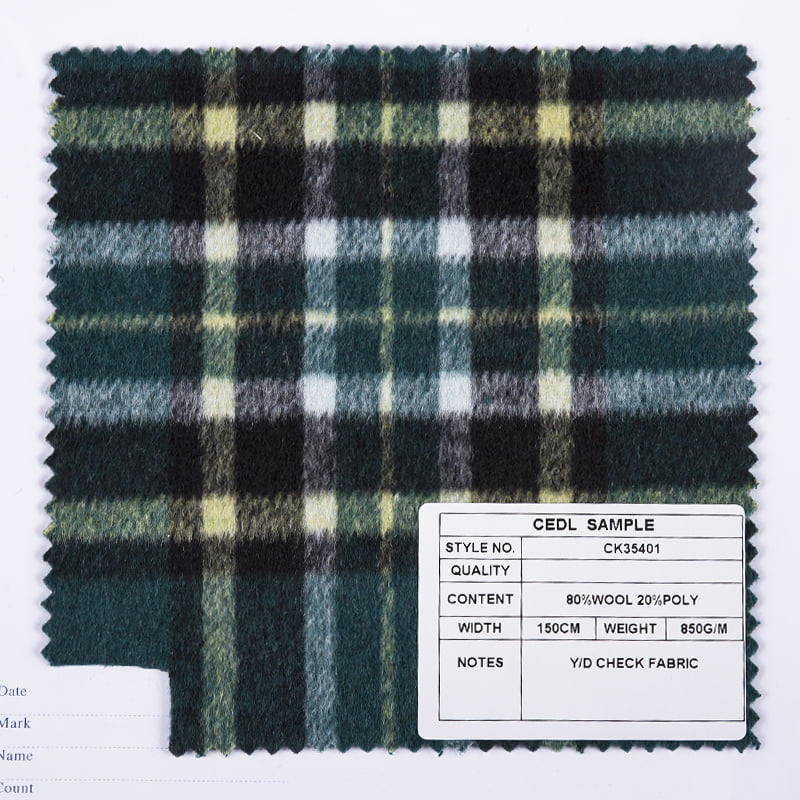 Green Vichy Windowpane Blend Check Plaid Woven Fleece Fabric For Overcoats SH2409 ist ein hochwertiger Wollmantelstoff, der Mode und Zweckmäßigkeit vereint und speziell für Sie entwickelt wurde, die Wert auf Qualität und Stil legen. Dieser Stoff weist ein einzigartiges grünes Vichy-Fensterscheibendesign auf, das klassische und moderne Elemente geschickt kombiniert und einen einzigartigen Modecharme zeigt. Der Hauptteil des Stoffes besteht aus hochwertiger Wolle und verbessert nach einem feinen Mischprozess nicht nur die Gesamtstruktur des Stoffes, sondern sorgt auch für eine hervorragende Wärmespeicherung und Atmungsaktivität. Die natürlichen Eigenschaften der Wolle verleihen dem Stoff eine weiche und hautfreundliche Haptik, sodass Sie beim Tragen Komfort und Wärme genießen können. In Bezug auf die Webtechnologie nutzt dieser Stoff eine exquisite Karo-Webtechnologie und integriert perfekt grüne Vichy-Fensterscheiben mit zarten Wollfasern, um ein Patchwork- und geschichtetes Karomuster zu bilden. Diese einzigartige Webmethode verstärkt nicht nur die Dreidimensionalität und den visuellen Effekt des Stoffes, sondern verbessert auch seine Haltbarkeit und Knitterfestigkeit, sodass der Mantel auch nach längerem Tragen frisch und stilvoll bleibt. Darüber hinaus weist dieser Stoff eine gute Farbstabilität und Farbechtheit auf. Auch nach mehrmaligem Waschen bleibt die grüne Vichy-Scheibe so hell und klar wie zuvor und sorgt dafür, dass Ihr Mantel immer wie neu aussieht.