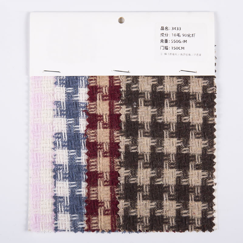 OEM/ODM 10 % Wolle, 90 % Chemiefaser, metallischer Windmühlen-Tweed-Stoff 3433. Wir haben mehr als 20 Jahre Branchenerfahrung und sind bekannt für hochwertige Stoffe und Garne.
