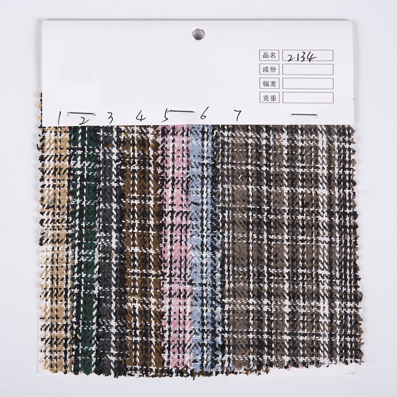Black Lines Check Plaid Tweed Stoff 2134 ist ein Stoffprodukt aus 100 % hochwertiger Chemiefaser. Der Stoff verwendet klassische schwarze Linien und feine Karomuster als zentrale Designelemente. Durch fortschrittliche Textiltechnologie werden die Linien und Karomuster perfekt integriert, um einen einzigartigen visuellen Effekt zu erzielen. Dieses Design unterstreicht nicht nur die Gesamtschönheit des Stoffes, sondern verbessert auch seine visuelle Schichtung und seinen Detailausdruck, sodass er in verschiedenen Bekleidungsproduktionen einen einzigartigen Charme und Stil zeigen kann. Aus materialtechnischer Sicht besteht der Stoff 2134 zu 100 % aus Chemiefasern und weist hervorragende physikalische Eigenschaften und chemische Stabilität auf. Chemiefasern sind bekannt für ihre hohe Festigkeit, Verschleißfestigkeit, Knitterfestigkeit, gute Elastizität und Formbeständigkeit. Diese Eigenschaften ermöglichen es dem 2134-Gewebe, während des Bekleidungsproduktionsprozesses eine stabile Form und Größe beizubehalten, und es ist nicht leicht, sich zu verformen oder zu knittern. Gleichzeitig weist Chemiefaser auch eine gute Antistatik- und UV-Beständigkeit auf, was die Hautgesundheit des Trägers bis zu einem gewissen Grad schützen kann. Darüber hinaus ist der Stoff 2134 auch pflegeleicht. Da Chemiefasern selbst nicht leicht Wasser absorbieren und eine glatte Oberfläche haben, ist dieser Stoff relativ leicht zu reinigen und zu pflegen, verblasst oder schrumpft nicht leicht und kann sein neues Aussehen und seine neue Textur lange beibehalten.
