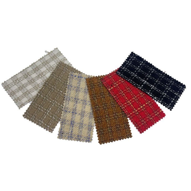 Bei diesem Stoff mit der Bezeichnung Artikel 3764 handelt es sich um ein gewebtes Tweed-Textil, das zu 100 % aus anderen Fasern besteht. Mit einem Flächengewicht von 560 g/m handelt es sich um eine mittelschwere bis schwere Konstruktion. Die Oberfläche kombiniert ein Karomuster mit einer Chenille-Struktur, die einem Bürstprozess unterzogen wurde. Bei dieser Veredelungstechnik werden die Fasern aus den Chenille-Garnen hochgezogen, wodurch eine weiche Oberflächenstruktur entsteht. Das Karomuster entsteht durch das Zusammenspiel farbiger Garne im Webprozess, wobei die geometrische Präzision erhalten bleibt. Diese Herstellungstechniken führen zu einem Stoff mit sowohl visueller Musterdefinition als auch einer unverwechselbaren taktilen Qualität. Dieser gewebte Tweed ist für Damenbekleidung geeignet, bei der Oberflächeneffekt und strukturelle Integrität erforderlich sind.