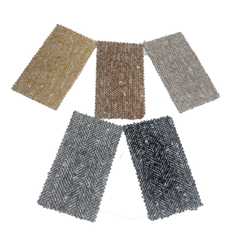 Bei diesem Stoff mit der Bezeichnung Artikel 3906 handelt es sich um ein Tweed-Textil, das zu 30 % aus Wolle und zu 70 % aus anderen Fasern besteht. Mit einem Flächengewicht von 620 g/m handelt es sich um eine schwere Konstruktion. Die grau-weiße Oberfläche kombiniert ein Fischgrätenmuster mit einer Blasenstruktur und erzeugt durch spezielle Webtechniken einen zusammengesetzten Effekt. Diese Methode erzeugt sowohl die charakteristischen V-förmigen Motive als auch lokalisierte erhabene Bereiche auf dem Stoff. Die Zusammensetzung der Wollmischung trägt zu den Wärmeisolationseigenschaften und der strukturellen Widerstandsfähigkeit des Stoffes bei. Diese technischen Eigenschaften führen zu einem Material mit verbesserter dreidimensionaler Textur und erheblicher Dichte, wodurch es für Winterkleidung geeignet ist, bei der erhöhte Wärme und Oberflächenwirkung erforderlich sind.