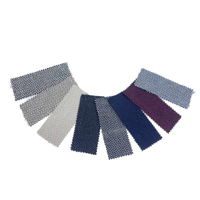 Bei diesem Stoff mit der Bezeichnung Artikel 3947 handelt es sich um einen jacquardgewebten Tweedstoff, der zu 100 % aus anderen Fasern besteht. Mit einem Flächengewicht von 480 g/m stellt es eine mittelschwere Konstruktion dar. Die dunkelblaue Oberfläche kombiniert ein Fischgrätenmuster mit einer Prägetechnik, wodurch an bestimmten Stellen der V-förmigen Motive eine erhabene Textur entsteht. Dieser Herstellungsprozess verbessert die dreidimensionale Qualität der gewebten Struktur und behält gleichzeitig die Integrität des geometrischen Designs bei. Die technischen Spezifikationen ergeben ein Gewebe mit ausgeprägter Flächendimensionalität und Strukturstabilität. Diese Eigenschaften machen diesen jacquardgewebten Tweed für die Jackenherstellung geeignet, bei der Texturinteresse und Musterdefinition erforderlich sind.
