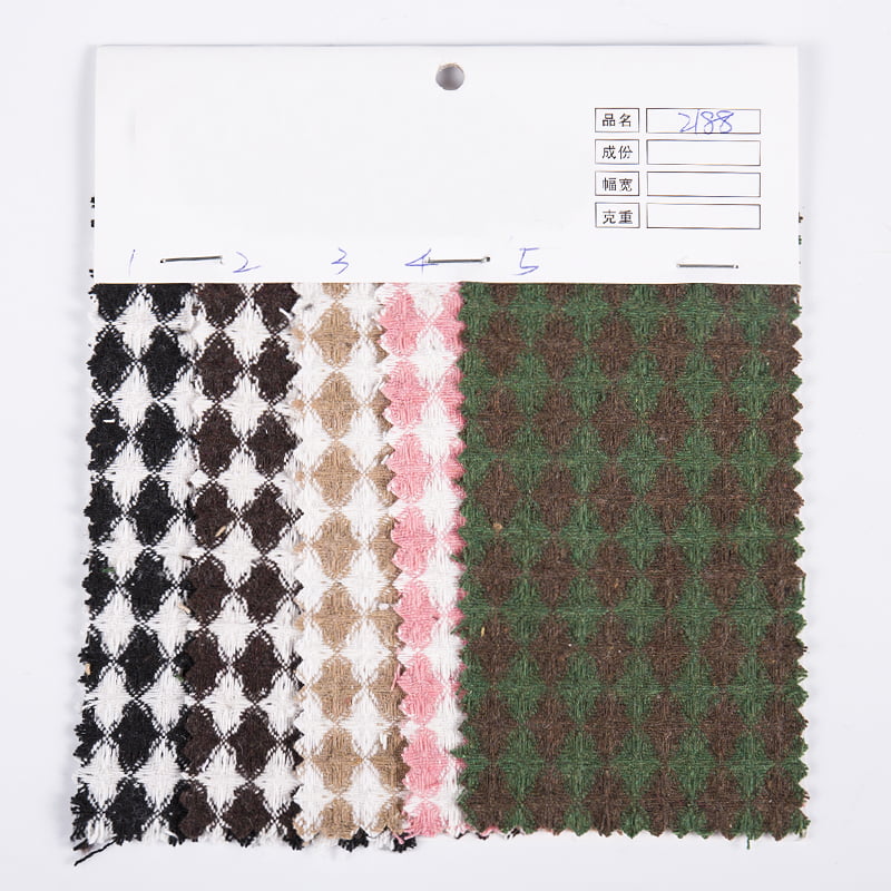 Diamond Check Jacquard Embossed Fabric 2188 ist ein professioneller Stoff aus 100 % Chemiefaser. Der Stoff nutzt das einzigartige Rautenkaro als zentrales Designelement. Durch die fortschrittliche Jacquard-Technologie wird dieses klassische Muster präzise auf die Stoffoberfläche gewebt. Jeder Diamantknoten wird sorgfältig verarbeitet, um die Integrität und Klarheit des Musters zu gewährleisten, was ein sehr hohes Maß an Handwerkskunst und Detailkontrolle zeigt. Was die Materialauswahl anbelangt, verwendet der Stoff 2188 hochwertige Chemiefasern, um die Haltbarkeit, Knitterfestigkeit und einfache Pflege des Stoffes zu gewährleisten. Mit ihren stabilen physikalischen und chemischen Eigenschaften verleihen Chemiefasern dem Stoff eine gute Dimensionsstabilität und lassen sich nicht leicht verformen oder schrumpfen. Gleichzeitig verbessert die Verschleißfestigkeit und Reißfestigkeit von Chemiefasern auch die Lebensdauer des Gewebes erheblich, sodass es in verschiedenen Anwendungsszenarien eine hervorragende Leistung aufrechterhalten kann. Neben exquisiter Jacquard-Technologie und hochwertigen Chemiefasermaterialien nutzt der 2188-Stoff auch die Prägetechnologie, um die Textur und den optischen Effekt des Stoffes weiter zu verbessern. Durch die Prägetechnologie wird die Oberfläche des Stoffes speziell behandelt, um ihm einen zarten und mehrschichtigen dreidimensionalen Effekt zu verleihen, der die Haptik und den visuellen Effekt des Stoffes verbessert. Dieses einzigartige Prägedesign verbessert nicht nur die Gesamtqualität des Stoffes, sondern macht ihn auch zu einem Blickfang bei verschiedenen Dekorations- und Bekleidungsanwendungen.