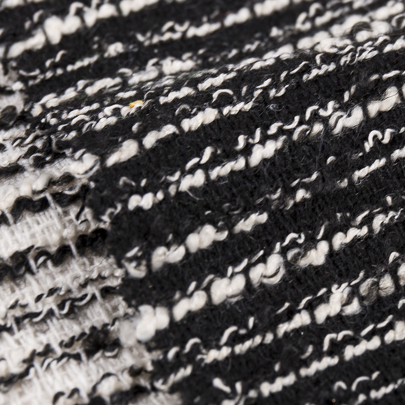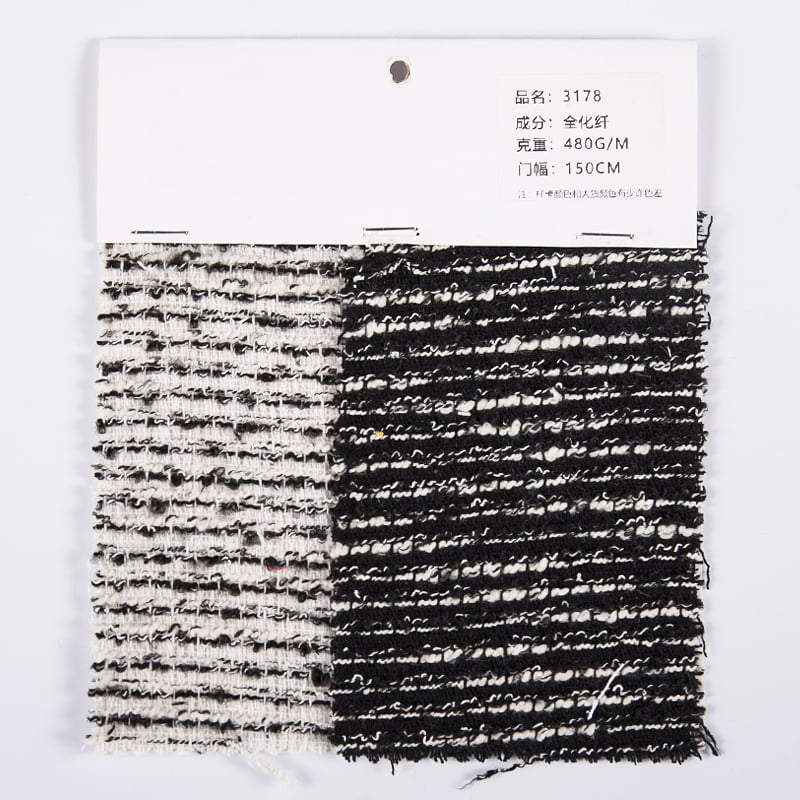 Der Polyester-Tweed-Stoff 3178 mit geprägten horizontalen Streifen besteht zu 100 % aus Chemiefasern, insbesondere aus hochwertigen Polyesterfasern, die die Haltbarkeit und hervorragende Leistung des Stoffes gewährleisten. Polyester ist bekannt für seine hervorragende Knitterfestigkeit, Abriebfestigkeit und gute Elastizität, wodurch das 3178-Gewebe verschiedenen Herausforderungen im täglichen Tragen problemlos gewachsen ist und gleichzeitig ein elegantes Aussehen behält. Unabhängig davon, ob es häufig gewaschen oder über einen längeren Zeitraum getragen wird, behält der Stoff seine ursprüngliche Form und Textur und ist nicht leicht zu verformen oder zu verblassen. Der Prägeprozess ist ein weiteres Highlight dieses Stoffes. Durch fortschrittliche Prägetechnologie haben wir ein zartes horizontales Streifenmuster auf der Stoffoberfläche geformt. Diese Streifen sorgen nicht nur für ein optisches Gefühl der Lagenbildung, sondern machen den Stoff auch dreidimensionaler und griffiger. Die Prägebehandlung verbessert nicht nur die Schönheit des Stoffes, sondern erhöht auch seine Haltbarkeit und Knitterfestigkeit, sodass Sie bei jedem Tragen den Komfort und die Textur eines neuen Produkts spüren können. Das Tweed-Design verleiht dem Stoff 3178 einen einzigartigen Stil von Robustheit und Eleganz. Dieses Design macht den Stoff nicht nur optisch voller und strukturierter, sondern sorgt auch für eine hervorragende Wärmespeicherleistung. Ob im kalten Winter oder im kühlen Frühling und Herbst, dieser Stoff bietet Ihnen Wärme und Komfort.