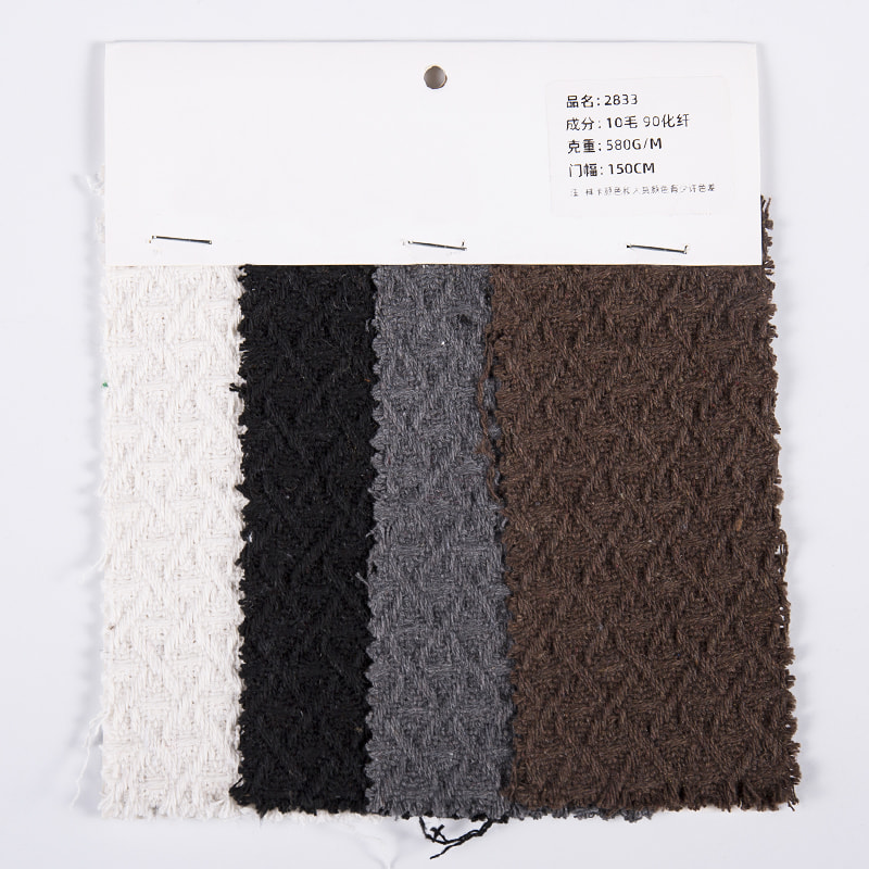 Dieser geprägte Wollpulloverstoff für Polster 2833 kombiniert nicht nur die natürliche Wärme von Wolle mit der Haltbarkeit von Chemiefasern, sondern verleiht Innenräumen durch ein einzigartiges Prägeverfahren auch ein einzigartiges visuelles und haptisches Vergnügen. Wolle ist als Schatz der Natur für ihre hervorragende Wärme und Atmungsaktivität bekannt. Für diesen Stoff haben wir 10 % hochwertige Wolle ausgewählt, um sicherzustellen, dass der Stoff den Menschen ein warmes und angenehmes Gefühl vermittelt. Ob es ein kalter Winter oder ein etwas kühler Frühling und Herbst ist, es kann zu einem unverzichtbaren Bestandteil Ihrer Inneneinrichtung werden und Ihrer Familie eine aufmerksame Pflege bieten. Um die Haltbarkeit und Praktikabilität des Stoffes zu verbessern, haben wir gleichzeitig 90 % chemische Faserbestandteile hinzugefügt. Dank der guten Knitterfestigkeit, Abriebfestigkeit und Pflegeleichtigkeit lässt sich dieser Stoff leichter reinigen und pflegen, während der weiche Griff von Wolle erhalten bleibt. Ob als Sofabezug, Überwurf für Kissen oder als Innendekoration wie ein Teppich, er zeichnet sich durch hervorragende Haltbarkeit und Praktikabilität aus. Durch Präzisionsmaschinen und die exquisiten Fähigkeiten der Handwerker präsentieren wir zarte und geschichtete Prägemuster auf dem Stoff. Diese Muster sind nicht nur schön und elegant, sondern können dem Innenraum auch Dreidimensionalität und Schichtung verleihen und Ihre Wohnumgebung wärmer und stilvoller machen.