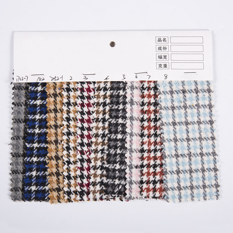 OEM/ODM Mehrfarbiger Webstoff mit Hahnentrittmuster und Karomuster für Kleidungsstück 1702/1822/2052. Wir haben mehr als 20 Jahre Branchenerfahrung und sind bekannt für hochwertige Stoffe und Garne.