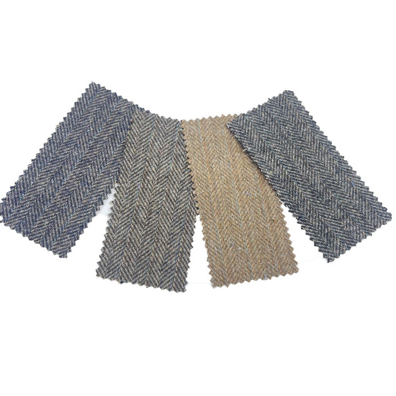 Bei diesem Stoff mit der Bezeichnung Artikel 3534 handelt es sich um ein Tweed-Textil, das zu 10 % aus Wolle und zu 90 % aus anderen Fasern besteht. Mit einem Flächengewicht von 500 g/m handelt es sich um eine mittelschwere bis schwere Konstruktion. Auf der Oberfläche sind braune und blaue Streifen zu einem strukturierten Muster angeordnet, das durch eine spezielle Webtechnik entsteht. Diese Methode erzeugt lineare Farbbänder mit definierten Kanten und konsistenter Wiederholung. Die Zusammensetzung der Wollmischung trägt zur Wärmeregulierung und den Drapierungseigenschaften des Stoffes bei. Diese technischen Spezifikationen führen zu einem Material mit gerichteter Musterung und struktureller Integrität, wodurch es für Anwendungen geeignet ist, bei denen eine definierte Streifendefinition und Stoffbelastbarkeit erforderlich sind.