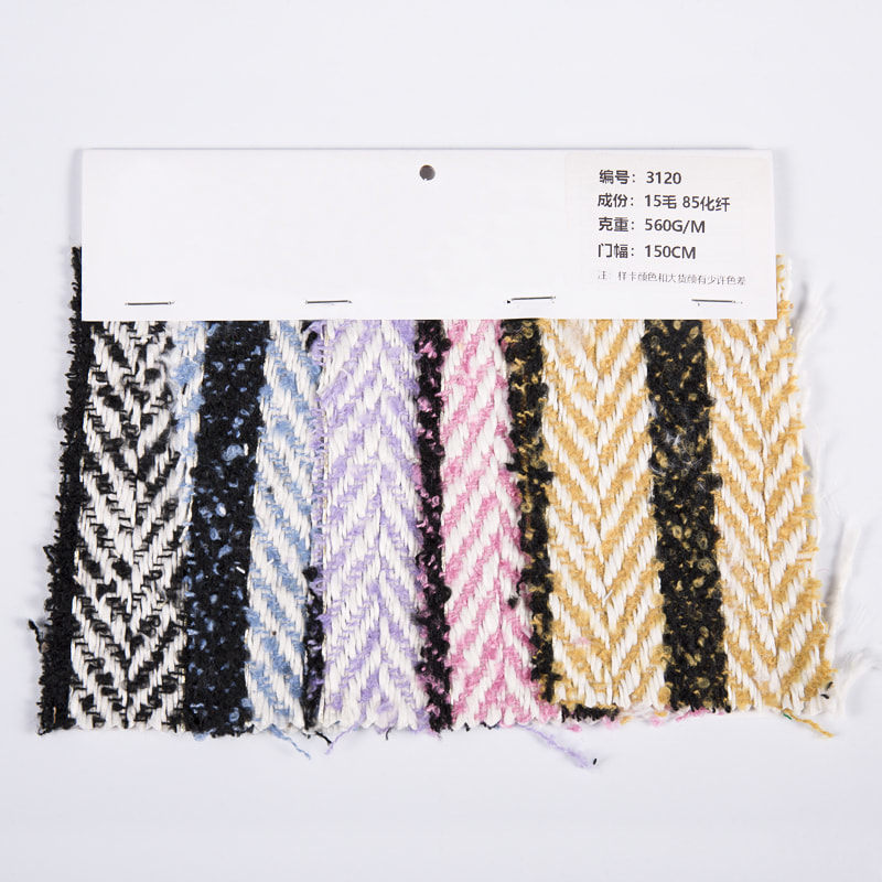 OEM/ODM Dicker Jacquard-Woll-Tweed-Stoff mit Fischgrätenmuster 3120. Wir haben mehr als 20 Jahre Branchenerfahrung und sind bekannt für hochwertige Stoffe und Garne.