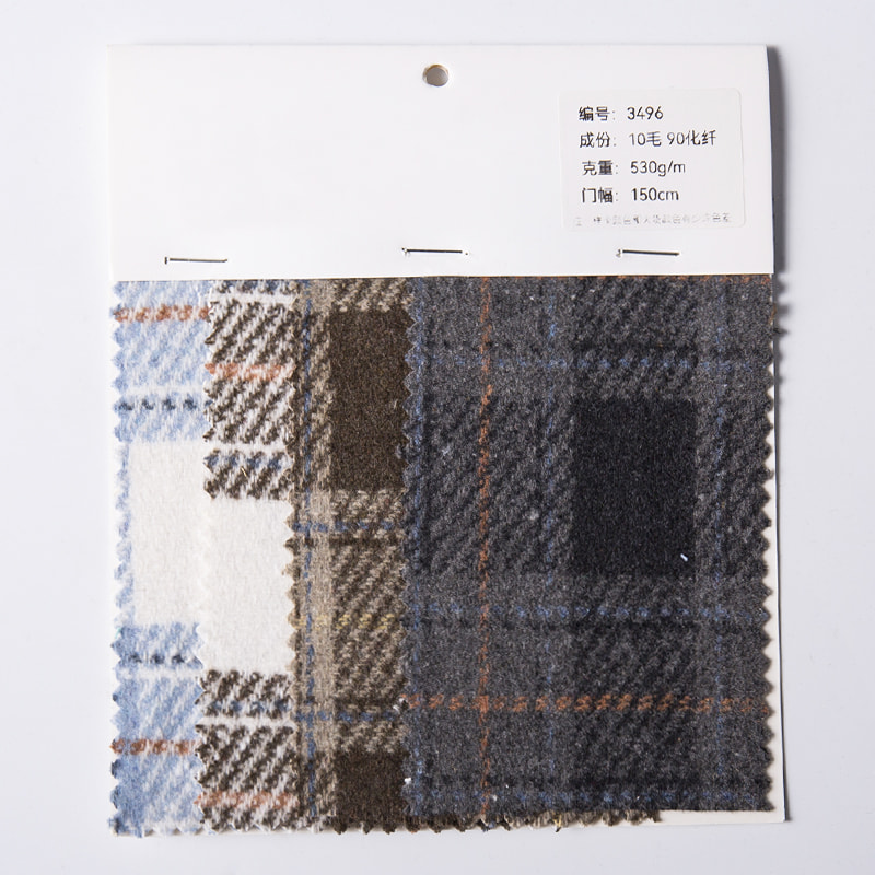 Mehrfarbiger, weicher Woll-Tweed-Stoff mit Plaid für Mäntel 3496 ist sorgfältig aus 10 % hochwertiger Wolle und 90 % Hochleistungs-Chemiefasern zusammengestellt, um ein hervorragendes Tragegefühl und Praktikabilität zu bieten. Durch ein ausgeklügeltes Mischverfahren kombiniert der Stoff perfekt die natürliche Wärme von Wolle mit der Strapazierfähigkeit von Chemiefasern und sorgt so dafür, dass der Stoff warm und bequem ist und gleichzeitig eine gute Knitterfestigkeit aufweist und leicht zu handhaben ist. Das Karomuster des Stoffes 3496 ist einzigartig gestaltet, mit satten Farben und geordneter Verflechtung, zeigt einen zarten visuellen Effekt und verleiht dem Design des Mantels ein einzigartiges Modeelement. Seine Oberfläche wurde speziell behandelt, fühlt sich weich und zart an, fühlt sich angenehm an und kann dem Träger ein hervorragendes Tragegefühl bieten. Gleichzeitig behält der Stoff einen guten natürlichen Fall bei und sorgt dafür, dass der Mantel eine klare Form und glatte Linien hat und ein raffiniertes Gespür für hochwertige Individualisierung zeigt. In Bezug auf die Leistung verfügt der Stoff 3496 über eine hervorragende Wärmespeicherung und Atmungsaktivität, wodurch der Körper in der kalten Jahreszeit angenehm warm bleibt und übermäßige Stickigkeit vermieden wird. Darüber hinaus sorgt seine mäßige Elastizität und Knitterfestigkeit dafür, dass sich das Fell beim Tragen nicht leicht verformt und es lange frisch und schön bleibt.