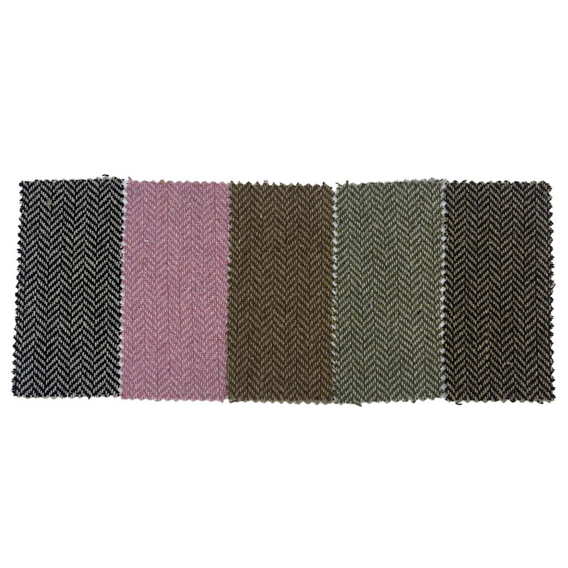 Bei diesem Stoff mit der Bezeichnung Artikel 3532 handelt es sich um einen Jacquard-Textil, der zu 20 % aus Wolle und zu 80 % aus anderen Fasern besteht. Mit einem Flächengewicht von 500 g/m handelt es sich um eine mittelschwere bis schwere Konstruktion. Die rosafarbene Oberfläche weist ein Fischgrätenmuster auf, das durch das Jacquard-Webverfahren entsteht und präzise V-förmige Motive auf dem Stoff bildet. Diese Technik erzeugt eine konsistente Richtungstextur mit definierter geometrischer Wiederholung. Die Wollmischung trägt zu den thermischen Eigenschaften und der Formbeständigkeit des Stoffes bei. Diese technischen Eigenschaften führen zu einem Material mit struktureller Dichte und Musterklarheit, wodurch es für Hosen geeignet ist, bei denen sowohl visuelle Definition als auch Dimensionsstabilität erforderlich sind.