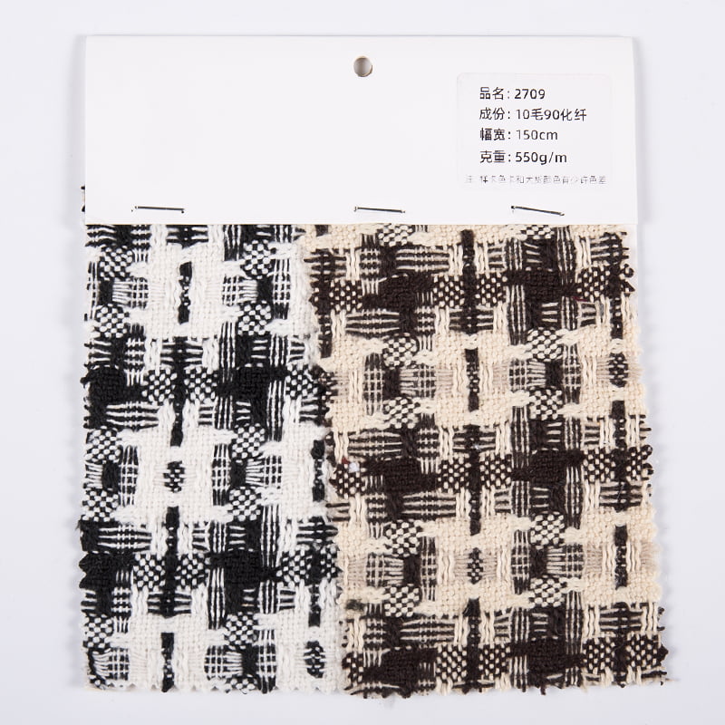 Der karierte Jacquard-Fleecestoff 2709 ist ein hochwertiger Stoff, der speziell für den modernen Textilmarkt entwickelt wurde. Diese beiden Stoffe nutzen fortschrittliche Jacquard-Technologie, um feine Karomuster geschickt in die Stoffstruktur zu integrieren, was nicht nur die visuelle Schichtung und den Detailausdruck verbessert, sondern auch den Stoff durch dreidimensionale Webtechniken deutlich aufwertet. taktiles Erlebnis. Hinsichtlich der Materialzusammensetzung verwendet die Serie 2709 streng ausgewählte Mischmaterialien, um sicherzustellen, dass die Gesamtleistung des Stoffes optimal ist. Konkret enthalten beide Stoffe 10 % Naturwolle. Wolle ist bekannt für ihre gute Wärmespeicherung, Atmungsaktivität und ihr sanftes Hautgefühl, sodass die Stoffe auch in der kalten Jahreszeit angenehm warm bleiben. Gleichzeitig verleihen die natürlichen Eigenschaften der Wolle dem Stoff auch eine gewisse Feuchtigkeitsaufnahme- und Schweißfunktion und verbessern so den Tragekomfort. Um die Haltbarkeit und Praktikabilität des Stoffes weiter zu verbessern, werden außerdem 90 % Chemiefaserkomponenten hinzugefügt. Chemiefasern sind aufgrund ihrer hohen Festigkeit, Strapazierfähigkeit und Pflegeleichtigkeit aus modernen Textilien nicht mehr wegzudenken. Der Zusatz dieser Chemiefaserkomponenten erhöht nicht nur die Knitterfestigkeit des Stoffes, sodass die Kleidung oder Dekorationen auch bei längerem Gebrauch glatt und schön bleiben, sondern verbessert auch die Reißfestigkeit und Haltbarkeit des Stoffes erheblich und verlängert so die Nutzungsdauer das Produkt. Leben.