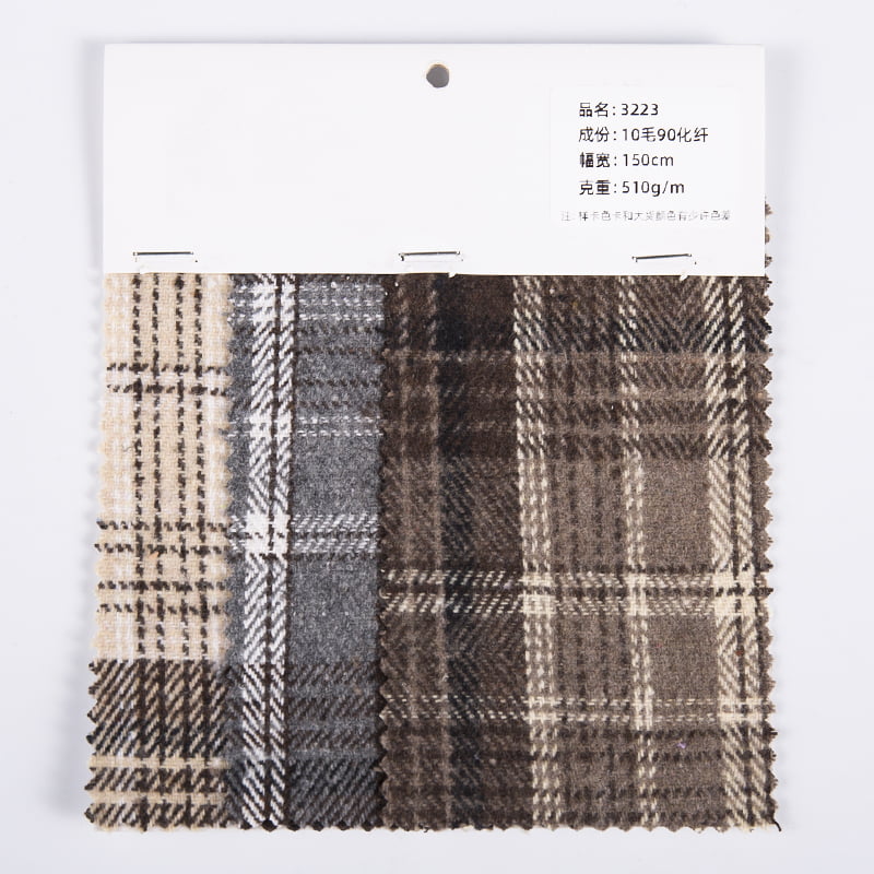Der Plaid Twill Wool Touching Tweed Fabric From China 3223 ist ein hochwertiger Mischstoff aus China. Durch ausgefeilte Textiltechnologie werden 10 % hochwertige Wolle und 90 % Hochleistungs-Chemiefaser wissenschaftlich aufeinander abgestimmt, um einen neuen Stoff mit natürlicher Wärme und modernen Eigenschaften zu schaffen. Der Stoff übernimmt in seinem Design das klassische Karo-Twill-Muster. Durch die Feinwebtechnik erzeugt das Muster einen visuellen Patchwork-Effekt und glatte Linien und verleiht dem fertigen Bekleidungsprodukt ein einzigartiges Retro- und Modeelement. Materialtechnisch sorgt der Wollzusatz für einen guten Wärmerückhalt und eine gute Atmungsaktivität des Stoffes, sodass der Träger auch im Herbst und Winter ein angenehmes Körpergefühl behält. Gleichzeitig verbessert der natürliche weiche Griff von Wolle auch die Gesamtqualität des Stoffes, wodurch die Kleidung besser auf der Haut sitzt und ein angenehmes Tragegefühl entsteht. Durch die Beimischung chemischer Fasern werden die praktischen Eigenschaften des Stoffes erheblich verbessert, einschließlich Verschleißfestigkeit, Knitterfestigkeit und Pflegeleichtigkeit, wodurch dieser Stoff vielseitiger einsetzbar und langlebiger wird und gleichzeitig eine hochwertige Textur behält. Das Texturdesign von Tweed verleiht diesem Stoff außerdem reichhaltige visuelle Schichten und ein dreidimensionales Gefühl. Diese einzigartige Textur verbessert nicht nur die Gesamtästhetik des Stoffes, sondern macht die daraus hergestellten Bekleidungsprodukte auch erkennbarer und personalisierter. Ganz gleich, ob er in exquisiten Mänteln, eleganten Kleidern oder Freizeithosen verwendet wird, dieser Stoff kann seine einzigartige Textur und seinen Designcharme perfekt zur Geltung bringen und wird zu einer hochwertigen Stoffwahl, die sowohl moderne Mode als auch Funktionalität betont.