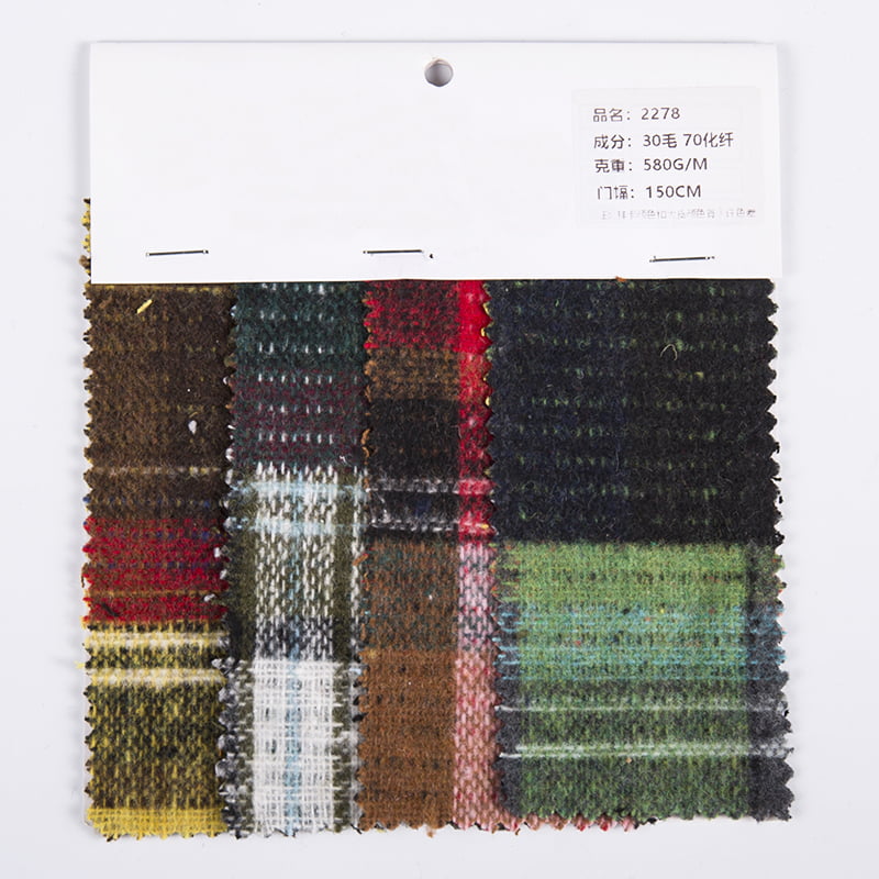 OEM/ODM Schottenkaro, mehrfarbig, 30 % Wolle, 70 % Chemiefaser-Tweed-Stoff 2278. Wir haben mehr als 20 Jahre Branchenerfahrung und sind bekannt für hochwertige Stoffe und Garne.
