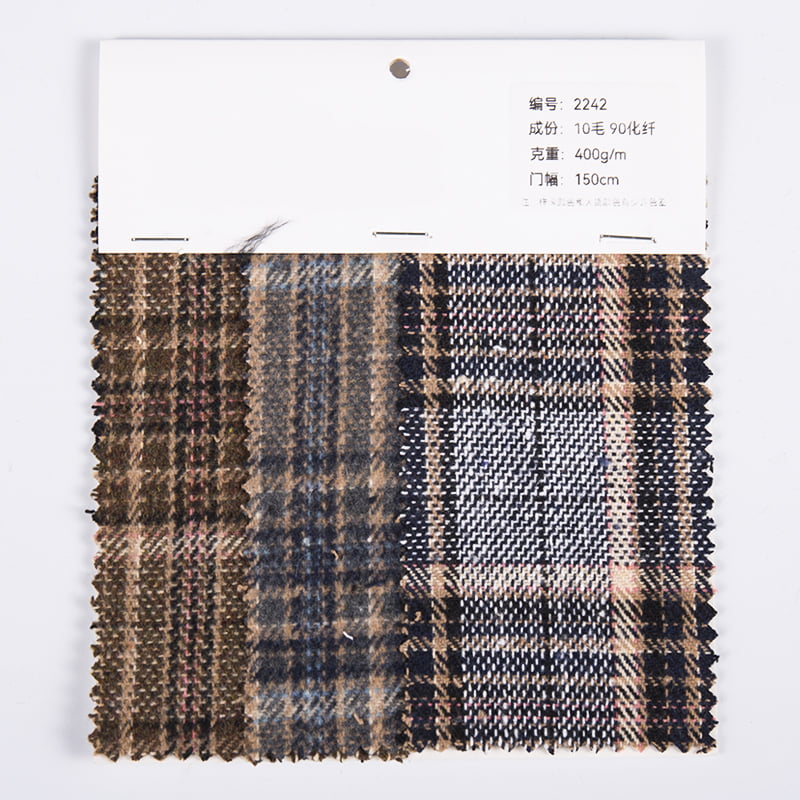 OEM/ODM Tartan-Karomuster aus 10 % Wolle und 90 % Chemiefaser-Tweed-Stoff 2242. Wir haben mehr als 20 Jahre Branchenerfahrung und sind bekannt für hochwertige Stoffe und Garne.