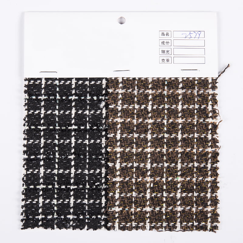 OEM/ODM Vichy-Chemiefaser-Gold/Splitter-Metallic-Tweed-Stoffe für Bekleidung 2579. Wir haben mehr als 20 Jahre Branchenerfahrung und sind bekannt für hochwertige Stoffe und Garne.