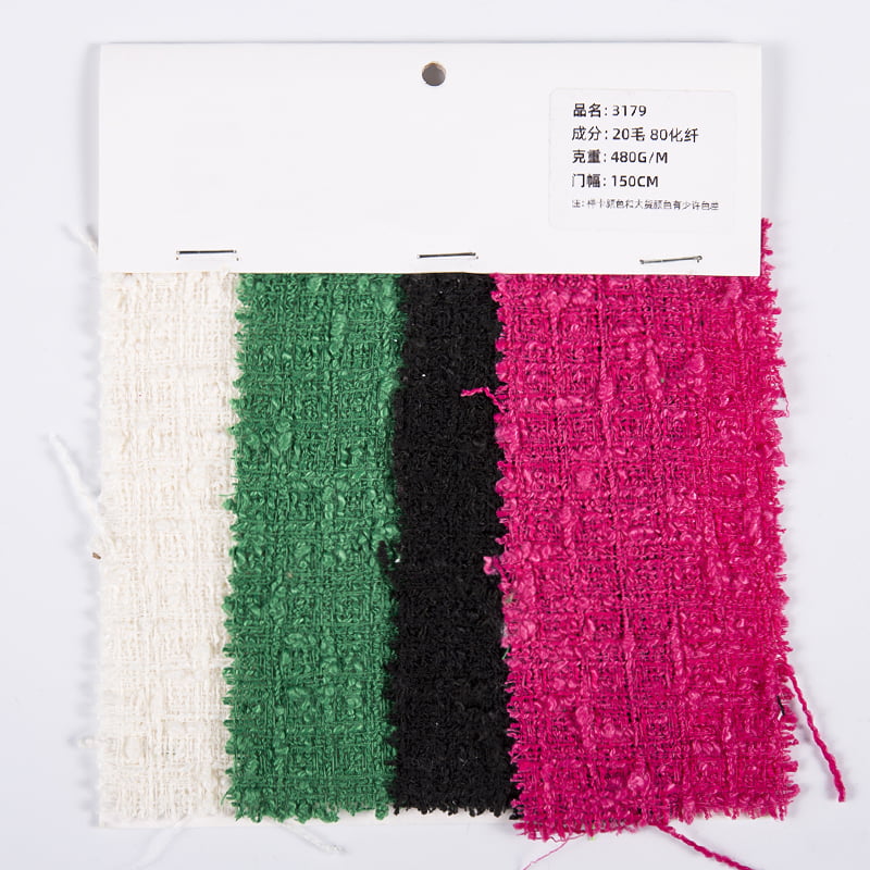 OEM/ODM Woll-Polyester-Chanel-Stoff für Kleid 3179. Wir haben mehr als 20 Jahre Branchenerfahrung und sind bekannt für hochwertige Stoffe und Garne.